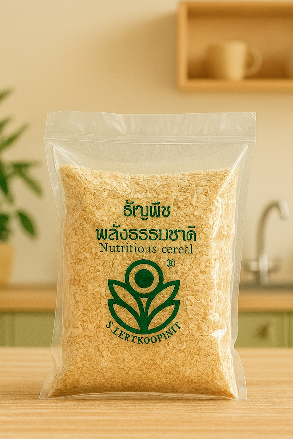 A wholesome blend of Thai whole grains including brown rice, millet, and wheat. Lightly roasted without oil to preserve natural crispness and nutrition. Rich in dietary fiber, vitamins, and minerals for a healthy lifestyle.